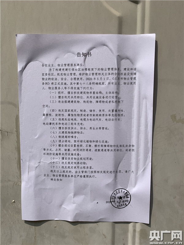 居民家門口貼的告知書(中央廣播電視總臺央廣記者 錢成 攝)