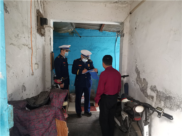 5月1日早上7點,北京市朝陽區(qū)消防救援支隊相關執(zhí)法人員前往朝陽區(qū)十八里店鄉(xiāng)的多處出租屋內(nèi)進行執(zhí)法檢查。執(zhí)法過程中,檢查人員發(fā)現(xiàn)在一處出租屋內(nèi)的疏散通道上存在對電動自行車“飛線”充電的違規(guī)行為。朝陽區(qū)消防救援支隊防火監(jiān)督二處辛劭波告訴記者,根據(jù)《北京市物業(yè)管理條例》第七十八條第二款第五項的規(guī)定,違規(guī)私拉電線、電纜為電動汽車、電動自行車、電動摩托車和電動三輪車等充電,屬于違法行為。辛劭波說:“我們來到這一戶進行檢查,發(fā)現(xiàn)在疏散通道里停放了有三輛電動車,其中有一輛電動車拉著‘飛線’,接了一個插線板在通道處充電。然后我們就告知房主(及租戶)這樣充電是很不安全的,要求他立即整改。”