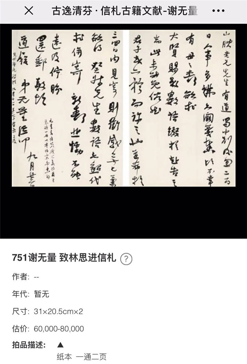 “古逸清芬·信札古籍文獻(xiàn)”專場(chǎng)拍品中,出現(xiàn)了數(shù)十件近代名人致西南名儒林思進(jìn)的信札,官方估價(jià)在1萬-8萬元不等,這些信函屬于四川省圖書館的館藏文物,應(yīng)存于四川省圖書館。這一消息最初由公眾號(hào)“江上說的”發(fā)出,11日下午,中國(guó)之聲記者獨(dú)家聯(lián)系到文章作者江上。