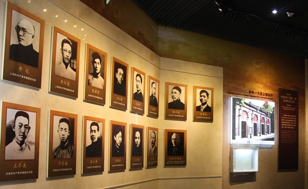南湖革命紀(jì)念館展出的中共一大代表圖片