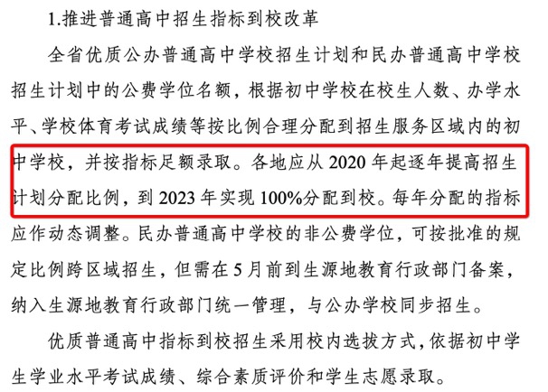 根據昆明市教育體育局發(fā)布的2021年中考六問六答,此次改革的核心是指標到校。從2021年起,增設優(yōu)質普通高中劃出一定比例的招生名額分配到招生區(qū)域內所有初中學校的招生方式,簡稱為“配額生招生”,今年的“配額生”指標為40%。