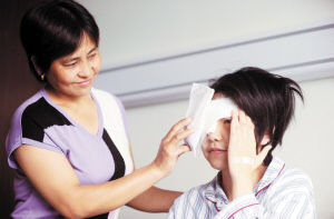 在天津醫(yī)科大學眼科中心的病房,記者見到了本月16日剛剛做完手術的劉靜環(huán)。她躺在病床上,右眼包裹著厚厚的紗布,盡管母親馬兆霞按照醫(yī)生的指示一直在用冰袋幫助女兒敷右眼部,但是她還是感到疼痛,左眼也被帶著有些腫。但她一直沒有喊疼,見有人進病房,她立即讓母親扶自己坐起來。盡管眼部包著紗布,但仍然可以看出她是個清秀的姑娘,說起話來也斯文大方。