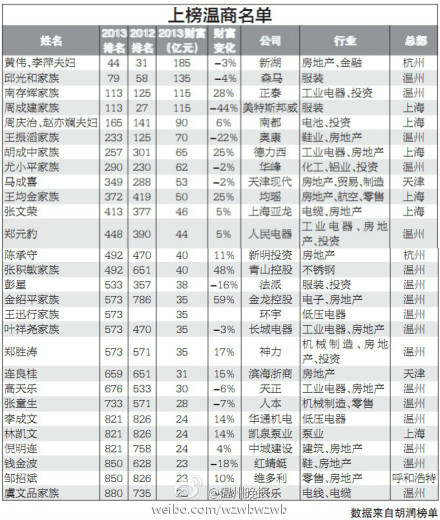 2013胡潤(rùn)百富榜發(fā)布 上榜溫商態(tài)度冷淡質(zhì)疑數(shù)據(jù)來(lái)源