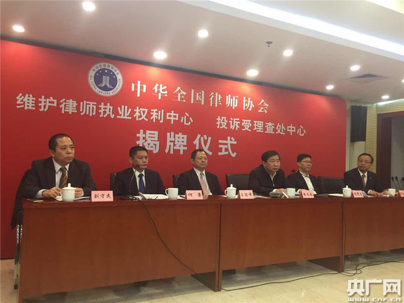 央廣網(wǎng)北京3月24日消息(記者孫瑩)據(jù)中國(guó)之聲《央廣新聞》報(bào)道,今天上午,中華全國(guó)律師協(xié)會(huì)召開(kāi)2017年首次新聞發(fā)布會(huì),發(fā)布《律師協(xié)會(huì)維護(hù)律師執(zhí)業(yè)權(quán)利規(guī)則(試行)》、修訂完善《律師執(zhí)業(yè)行為規(guī)范》、《律師協(xié)會(huì)會(huì)員違規(guī)行為處分規(guī)則(試行)》,“全國(guó)律協(xié)維護(hù)律師執(zhí)業(yè)權(quán)利中心”和“全國(guó)律協(xié)投訴受理查處中心”正式掛牌,全國(guó)律協(xié)對(duì)律師執(zhí)業(yè)權(quán)利維護(hù)、紀(jì)律懲戒、收費(fèi)規(guī)范等熱點(diǎn)問(wèn)題進(jìn)行回應(yīng)。