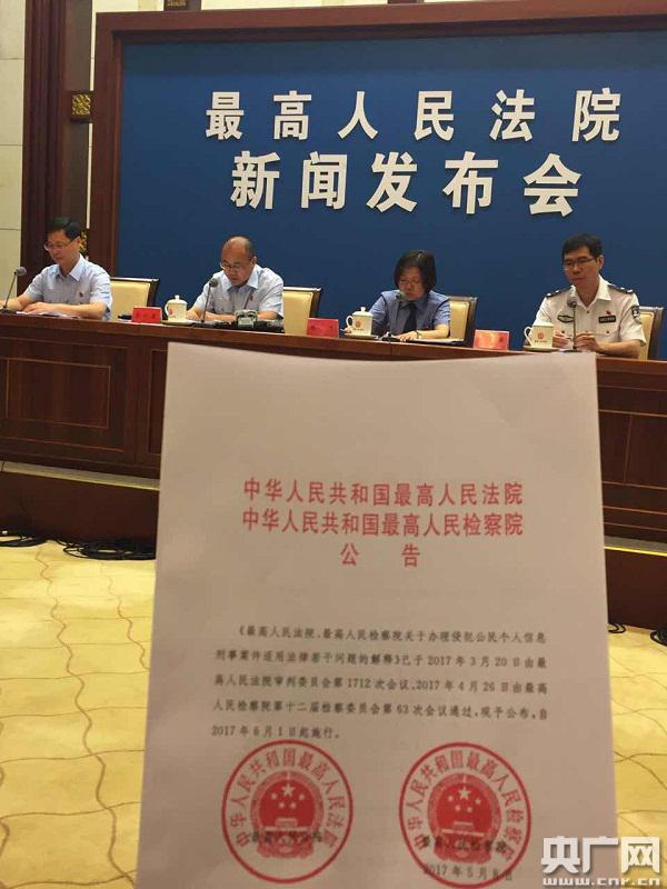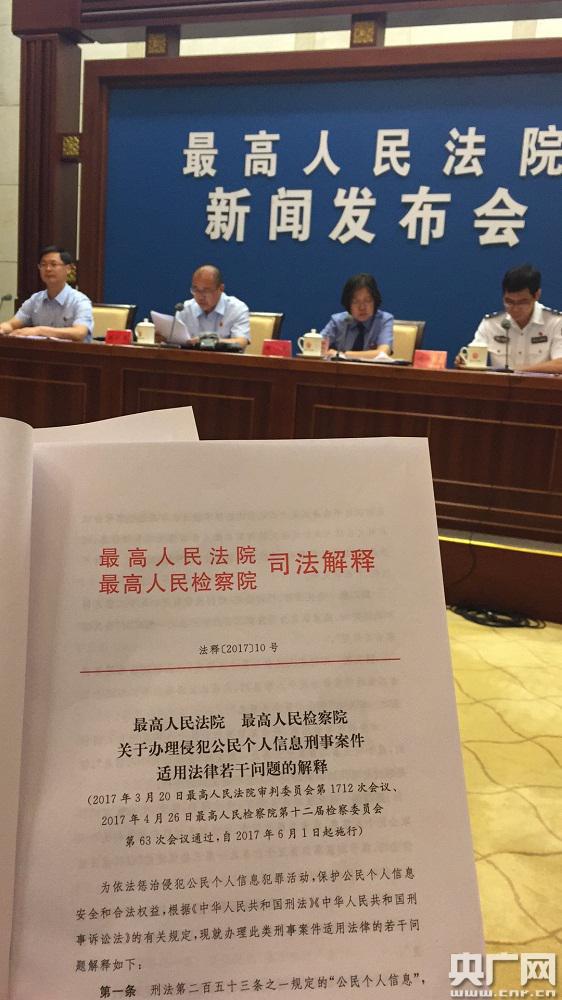 央廣網(wǎng)北京5月9日消息(記者孫瑩)據(jù)中國之聲《央廣新聞》報道,隨著信息化建設(shè)的推進,信息資源成為重要的生產(chǎn)要素和社會財富。與此同時,個人信息泄露問題嚴(yán)重,個人信息安全成為一個全社會高度關(guān)注的問題。為保護公民個人信息,我國《刑法修正案(七)》增設(shè)了出售、非法提供公民個人信息罪和非法獲取公民個人信息罪,《刑法修正案(九)》又完善了相關(guān)規(guī)定,今天,《最高人民法院、最高人民檢察院關(guān)于辦理侵犯公民個人信息刑事案件適用法律若干問題的解釋》發(fā)布。
