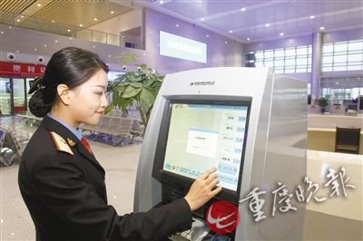 萬州北站候車大廳內(nèi)專設(shè)一臺售取票機(jī),方便顧客臨時換乘購票。