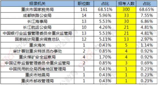重慶中公教育專家龔國魁分析,通過審核人數(shù)穩(wěn)居第一的重慶市國家稅務(wù)局,同時也是本次國考重慶地區(qū)“招錄大戶”,招錄崗位及人數(shù)最多。
