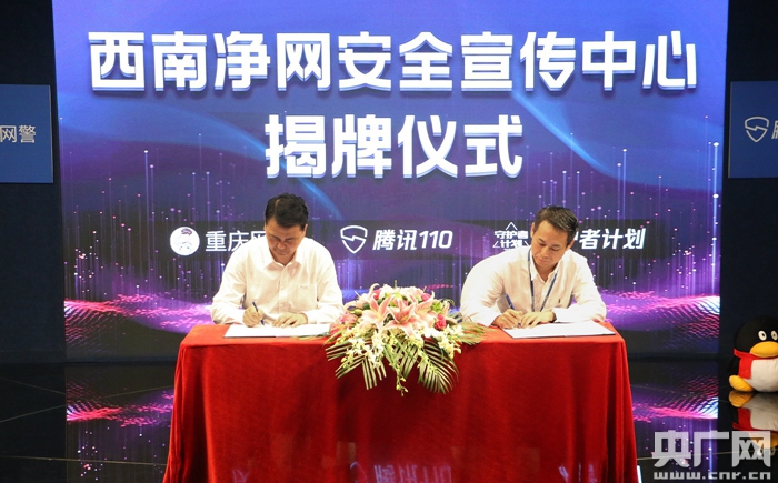 4月25日,騰訊旗下的網(wǎng)絡(luò)詐騙、傳銷等違法違規(guī)舉報(bào)受理平臺(tái)——騰訊110與重慶市公安局網(wǎng)絡(luò)安全保衛(wèi)總隊(duì)在騰訊西南總部達(dá)成合作協(xié)議,共同成立“西南凈網(wǎng)安全宣傳中心”并舉行掛牌儀式。重慶市公安局副局長(zhǎng)郭金嚴(yán)、騰訊110總經(jīng)理?xiàng)钅蠲癯鱿藘x式。