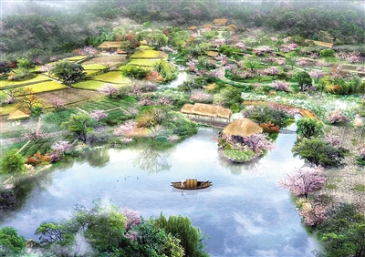 “給我100天,還您1000年!碧一ㄔ粗鞔颉疤以次幕保诰皡^(qū)打造之初,依然以自然風光為主導。而經(jīng)100天的升級改造后,到2017年3月,“新桃花源”將更加接近“桃源生活”的定位。