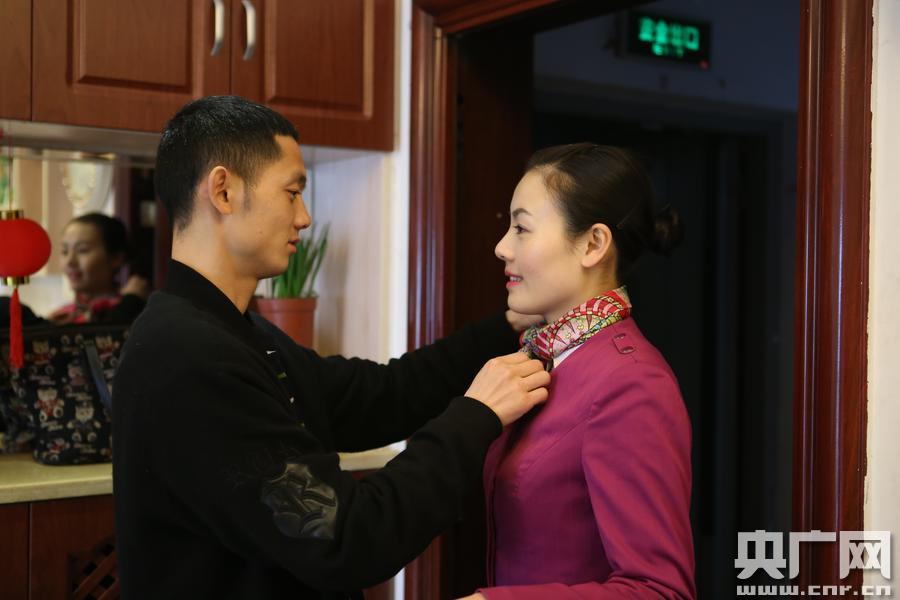 90后最美雙胞胎“辣媽”的第10個(gè)春運(yùn)(央廣網(wǎng)發(fā) 李娟攝) 明天就要出乘,今天下午5點(diǎn),趙玲就需要到車隊(duì)組織職工做好出乘學(xué)習(xí)和接車的準(zhǔn)備。穿上制服的那一刻,就要保持得體的妝容,對(duì)著,趙玲認(rèn)真的化妝。臨出門前,趙玲的老公細(xì)心、熟練的幫她整理好絲巾。 外面陽(yáng)光正好,一家四口其樂(lè)融融的幸福,也如春日的陽(yáng)光般和煦。 -