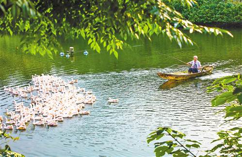 近日,豐都縣十直鎮(zhèn)紅廟子村,村民在魚塘放鵝。十直鎮(zhèn)是一個農(nóng)業(yè)人口大鎮(zhèn),由于交通閉塞,經(jīng)濟(jì)基礎(chǔ)薄弱,多數(shù)青壯年外出打工掙錢。近年來,為了發(fā)展農(nóng)村經(jīng)濟(jì),當(dāng)?shù)卣龑?dǎo)部分村民通過發(fā)展養(yǎng)殖肉牛、養(yǎng)魚、養(yǎng)鵝等特色生態(tài)農(nóng)業(yè),摘掉了貧困帽子,走上了致富路。