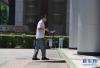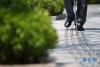 8月1日,一名盲人行走在重慶市江北區(qū)鷂子丘路一商圈附近的不銹鋼盲道上 新華社記者王全超 攝