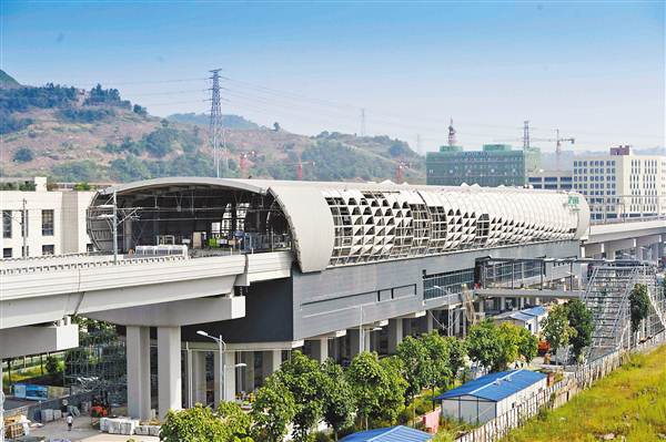 日前,軌道交通10號線長河站,外幕墻即將完工。長河站連接江北機場,是10號線唯一的高架站,其造型獨特,外幕墻采用蜂窩鋁板,部分鋁板可打開,加強自然采光的同時,給人以旋轉起飛的弧線感。