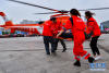 11月12日,航空應(yīng)急醫(yī)療救援在重慶市璧山區(qū)舉行,圖為救援人員將病人抬到擔(dān)架,準(zhǔn)備登機。新華網(wǎng) 李相博 攝 -