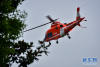 11月12日,航空應(yīng)急醫(yī)療救援在重慶市璧山區(qū)舉行,轉(zhuǎn)移到直升機后,救援人員對病人實施必要的急救措施。新華網(wǎng) 李相博 攝 -