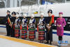 渝貴鐵路25日正式開通,重慶始發(fā)的D8581次實(shí)現(xiàn)2小時(shí)直達(dá)貴陽(yáng)。圖為車廂內(nèi)的吹奏蘆笙表演。新華網(wǎng) 張免 攝 -
