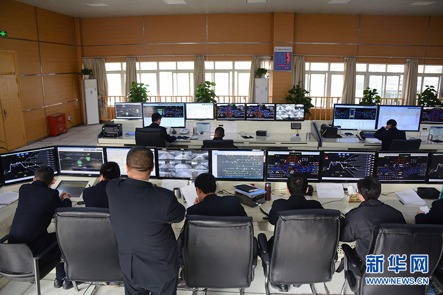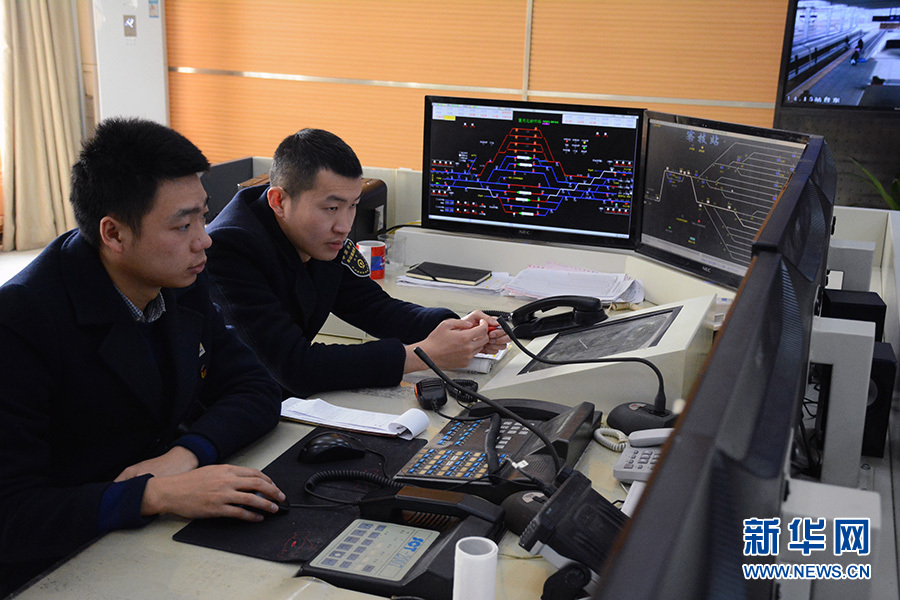 重慶北站運轉(zhuǎn)室內(nèi),車站值班員正認(rèn)真監(jiān)控列車運行情況。新華網(wǎng)趙紫東 攝 -