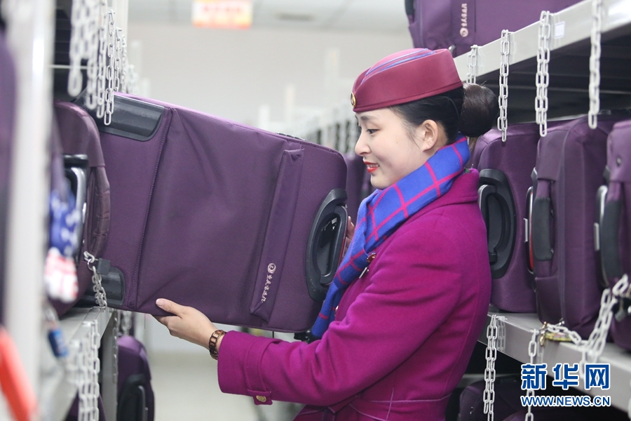 蔣紅為即將開始的“第一次”春運精致妝容。新華網(wǎng)發(fā) 包亮攝 新華網(wǎng)重慶2月11日電(唐詩雪 胡慧)春運的帷幕已徐徐拉開,返鄉(xiāng)的熱潮如期而至,作為高鐵上的“動妹”,也在平凡的崗位上奉獻著屬于她們的不平凡。重慶客運段動車一隊列車員蔣紅便是如此。 蔣紅,一位活潑開朗的90后,雖然今年春運是她的第一次春運,但她信心十足。出乘當日,凌晨五點的鬧鐘準時響起,蔣紅快速起床,15分鐘完成洗漱化妝,然后便前往學(xué)習(xí)室集合,做好出乘準備。 蔣紅所值乘的列車平均每天往返成渝線4次,共計8趟,平均每趟要來回巡視車廂10余次,車門迎客、整理行李架、安全宣傳、到站前播音也都一件不落的依次進行著。一趟車下來,諸多的“第一次”讓蔣紅既感興奮又覺疲憊。但她留給旅客最好的印象便是喜歡微笑,她說:“我很喜歡笑,因為溫暖的笑既能讓他人覺得親近,自己也能從中得到滿足! 在春運里,像蔣紅這樣的“動妹”還有很多,對于客運工作,她們由最初的陌生到熟悉,她們懂得從“枯燥”的工作中找尋到不一樣的快樂。用蔣紅的話說:“最初總是從新聞上,家人口中聽聞高鐵和春運,到現(xiàn)在親身感受,心里很激動和自豪。以前總以為列車員好輕松,做的事也很簡單,現(xiàn)在才知道并沒有想的那么容易。雖然是第一次春運,但在車上學(xué)到了很多技巧和前輩傳授的經(jīng)驗,對我來說這是很寶貴的財富,也讓我更加得心應(yīng)手!