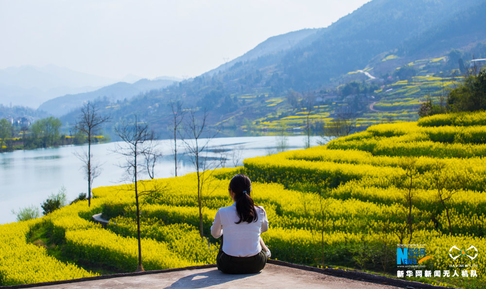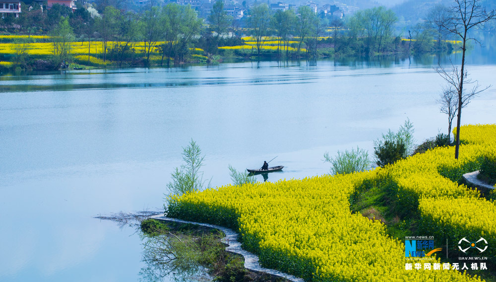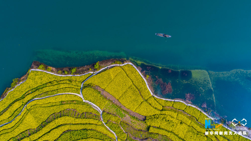 陽(yáng)春三月,春水初生,花海漸盛。在重慶市黔江區(qū)阿蓬江畔,油菜花海沿著江岸蔓延開(kāi)來(lái),正是半江春色半江水。圖為無(wú)人機(jī)航拍重慶阿蓬江春色,詩(shī)情畫(huà)意濃。新華網(wǎng)發(fā)(王江龍 攝) -