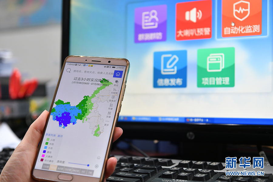 陳良斌、魏德勇、黃荀、向青松是重慶市南岸區(qū)僅有的四名地質(zhì)“體檢師”,每天上班的第一件事,便是通過手機查看當?shù)氐慕涤昵闆r。同時,通過監(jiān)測系統(tǒng),了解當?shù)刈钚碌娘L險走向。新華網(wǎng)發(fā)(郭旭 攝)