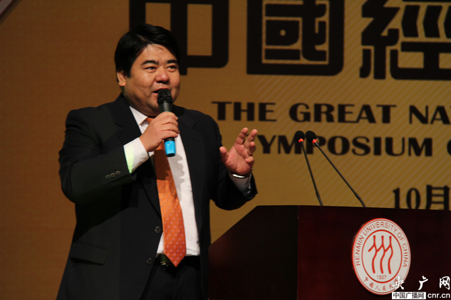 10月15日,由經(jīng)濟(jì)之聲、央廣網(wǎng)主辦的《大國(guó)大時(shí)代----中國(guó)經(jīng)濟(jì)十月談》系列時(shí)事報(bào)告會(huì)之“增長(zhǎng)談”,在人民大學(xué)舉行。圖為經(jīng)濟(jì)之聲主持人 徐強(qiáng)(央廣網(wǎng) 趙娜娜 攝)