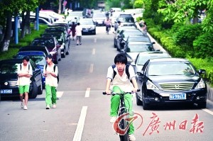 近日,不止一位的哥向廣州日?qǐng)?bào)記者抱怨,他們屢屢在匯景新城附近接到電話叫車,將匯景實(shí)驗(yàn)學(xué)校的學(xué)生接回小區(qū)。而這段距離才幾百米。“我們麻煩不說,關(guān)鍵是現(xiàn)在這些孩子也太沒用了吧!彪S后,記者來到匯景實(shí)驗(yàn)學(xué)?吹,該校校門口離匯景新城側(cè)門大概只有約二十多米的距離。中午時(shí)分,離放學(xué)還有半個(gè)小時(shí),陸陸續(xù)續(xù)已有七八輛豪車從匯景新城開出來,停在校門口附近,隨著離放學(xué)時(shí)間越來越近,加入等待隊(duì)伍的出租車也越來越多。