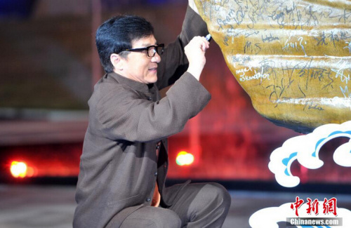 成龍現(xiàn)身河北石家莊,為其電影《絕地逃亡》造勢。中新社記者 翟羽佳 攝
