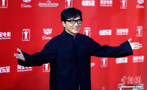 圖為成龍出席2015上海國際電影節(jié)開幕式。 湯彥俊 攝