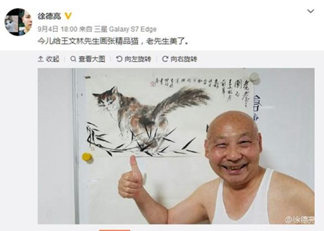 資料圖:徐德亮作畫送給王文林。(徐德亮微博截圖)