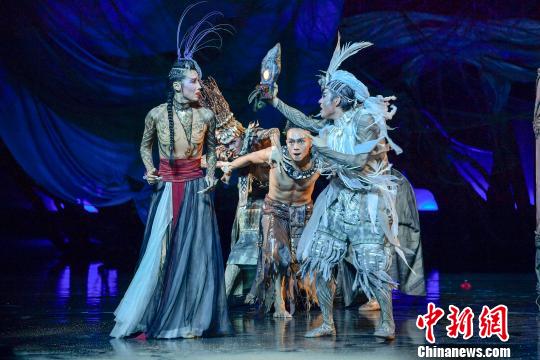 中新網(wǎng)?4月12日電 (洪堅(jiān)鵬)由海南省保亭黎族苗族自治縣與中國(guó)煤礦文工團(tuán)共同創(chuàng)作的大型現(xiàn)代民族舞劇《甘工鳥(niǎo)》12日晚在海口首演,將黎族人與鳥(niǎo)的傳統(tǒng)故事搬上舞臺(tái),并以唯美的演技,精彩炫目的舞臺(tái)、燈光效果呈現(xiàn)出來(lái)。