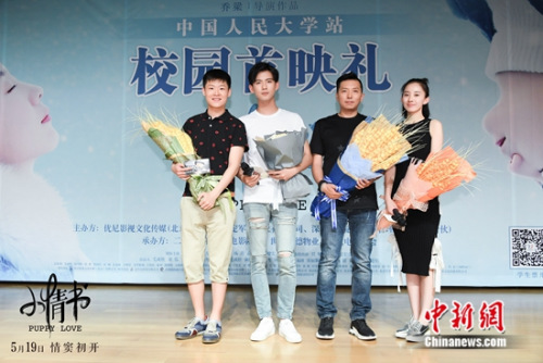 中新網(wǎng)北京5月10日電(記者 張曦)9日,青春電影《小情書》在北京舉行首映禮,映后,導(dǎo)演喬梁攜主創(chuàng)趙順然、朱顏曼滋、趙健雷現(xiàn)身與同學(xué)們交流互動,派發(fā)片中的“逢考必過”紅內(nèi)褲。