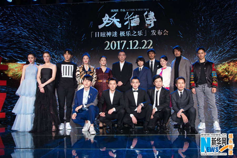 由陳凱歌導(dǎo)演的賀歲奇幻鉅制《妖貓傳》,于12月17日舉行“目眩神迷 極樂之樂”全球首映發(fā)布會,導(dǎo)演陳凱歌,制片人陳紅攜主演黃軒、染谷將太、張雨綺、秦昊、張榕容、張魯一、劉昊然、歐豪、阿部寬、松坂慶子、田雨、成泰燊、李淳,特別出演張?zhí)鞇壅鸷沉料啵涨褒嫶箨嚾莨餐_啟2017最受期待的盛唐奇觀。