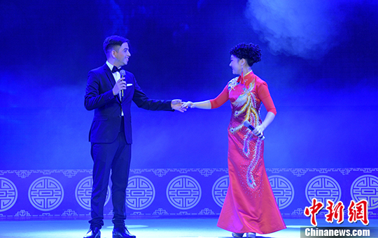 圖為來自委內(nèi)瑞拉的弗朗西斯科與四川川劇藝術(shù)家虞佳合唱川劇戲歌《靜夜思》。 中新社記者 劉忠俊 攝