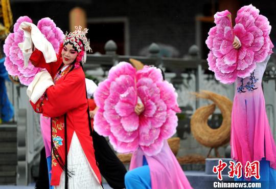 圖為鄉(xiāng)村春晚上福建的地方戲曲劇種之一的閩西漢劇演唱《南國(guó)牡丹》!埍 攝