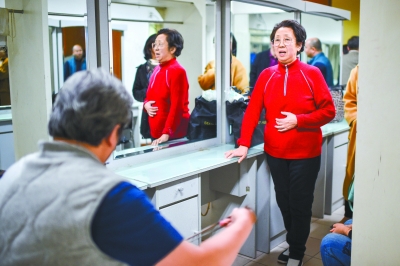 有人在舞臺上開心地接受觀眾如潮般的掌聲,也有人滿懷遺憾地離開。著名梅派表演藝術(shù)家李玉芙,特別看重這次演出。但80歲的她因為教學(xué)工作太累,這幾天失聲了。為了參加演出她昨天就去醫(yī)院打了激素針,因為沒有見效,演出前兩小時又打了一次針。直到演出開始了,她還在后臺跟琴師合練,做最后的努力。最終還是因為嗓子實(shí)在沒法兒堅持,只能在眾人的勸說下,滿懷歉意離開了劇場。