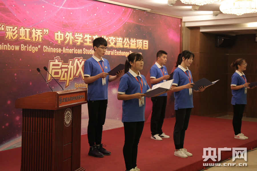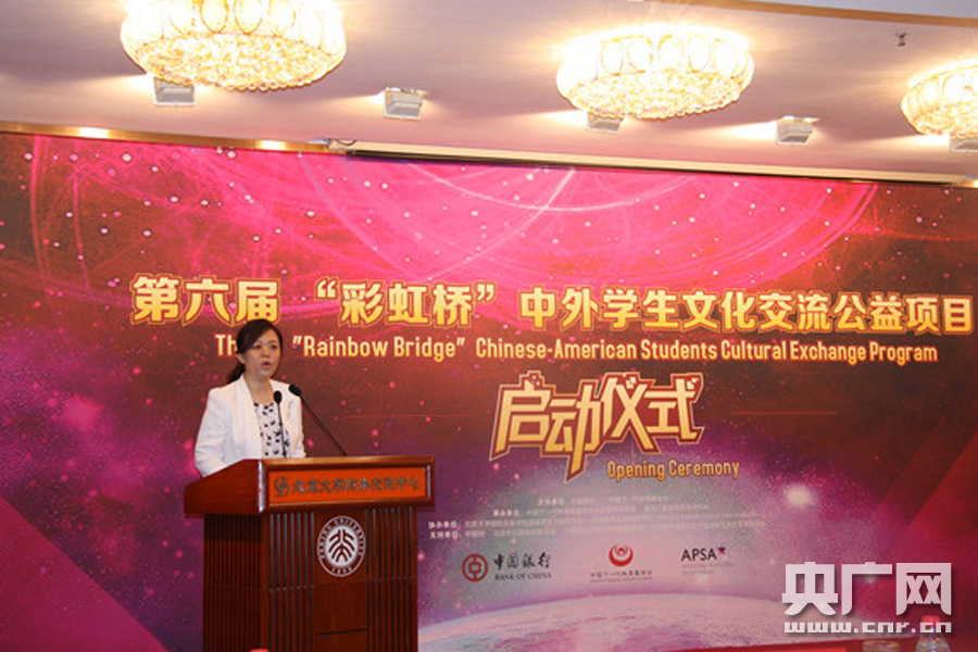 2017年7月25日上午,第六屆“彩虹橋”中外學(xué)生文化交流公益項(xiàng)目在北京大學(xué)英杰交流中心舉辦。來自中國銀行、中國下一代教育基金會(huì)、北京大學(xué)國際關(guān)系學(xué)院、北京市歸國華僑聯(lián)合會(huì)、美國人留學(xué)促進(jìn)會(huì)的相關(guān)領(lǐng)導(dǎo)出席啟動(dòng)儀式。本屆“彩虹橋”項(xiàng)目將資助30名品學(xué)兼優(yōu)的中國貧困大學(xué)生和20名熱愛中國文化的美國貧困大學(xué)生在中美兩國參加豐富多彩的文化學(xué)習(xí)和交流活動(dòng),是中國銀行創(chuàng)新教育扶貧的重要舉措。 “彩虹橋”中外學(xué)生文化交流公益項(xiàng)目是由中國銀行、中國下一代教育基金會(huì)和美國人留學(xué)促進(jìn)會(huì)于2012年共同發(fā)起的一項(xiàng)公益項(xiàng)目,旨在為中外家境貧寒、品學(xué)兼優(yōu)的青年學(xué)生提供赴異國學(xué)習(xí)交流、改變?nèi)松鷳B(tài)度、開拓國際視野的人生機(jī)會(huì),構(gòu)建中國與世界青年文化交流和溝通的橋梁。目前,“彩虹橋”中外學(xué)生文化交流公益項(xiàng)目已經(jīng)連續(xù)舉辦5年,共資助241名中美雙方家境貧寒、品學(xué)兼優(yōu)的學(xué)生。 -