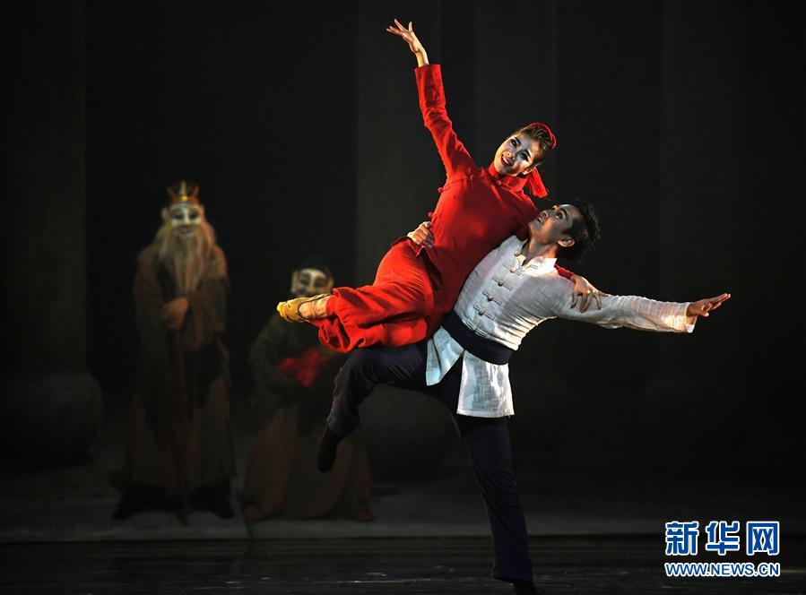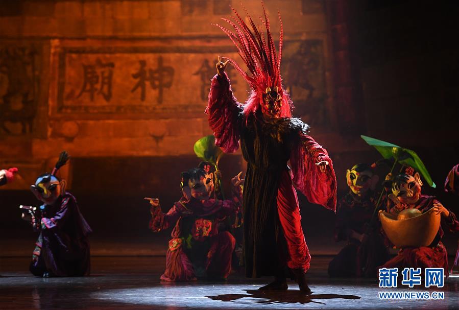 7月12日,演員在表演舞劇《儺情》。 7月12日,由北京舞蹈學(xué)院青年舞團(tuán)、江西省南豐縣石郵村儺班聯(lián)合主演的非物質(zhì)文化遺產(chǎn)研創(chuàng)舞劇《儺情》在位于南昌市的江西藝術(shù)中心上演。全劇圍繞中國(guó)古老的“儺”文化,以舞蹈獨(dú)有的方式生動(dòng)詮釋了中國(guó)傳統(tǒng)文化精神的源遠(yuǎn)流長(zhǎng)。新華社記者 萬象 攝 -