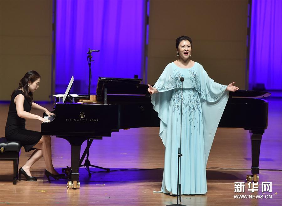 11月3日,次女高音歌唱家孫媛媛(右)在演唱中。當(dāng)晚,第十屆中央音樂學(xué)院國(guó)際室內(nèi)樂音樂節(jié)開幕。本屆音樂節(jié)于11月3日至9日在中央音樂學(xué)院舉行。該音樂節(jié)創(chuàng)辦于2008年,由中央音樂學(xué)院鋼琴系教授由熹擔(dān)任藝術(shù)總監(jiān)。新華社記者羅曉光攝