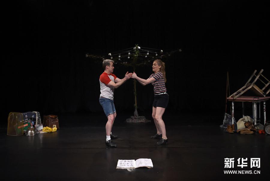 4月5日,演員蘇珊·克利里(左)與彼得·哈丁在表演中。當(dāng)日,愛爾蘭創(chuàng)意兒童舞劇《大浪之舞》亮相北京天橋藝術(shù)中心小不點(diǎn)大視界親子微劇場,曾在愛爾蘭踢踏舞劇《大河之舞》中出演的舞者蘇珊·克利里和彼得·哈丁聯(lián)袂登場,他們通過打擊樂、創(chuàng)意舞蹈、節(jié)拍游戲、講故事等形式,讓觀眾身臨其境感受“荒島求生”的故事。新華社記者 逯陽 攝 -
