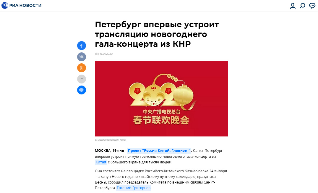 報(bào)道稱,據(jù)圣彼得堡市外事委員會(huì)主席葉甫根尼·格里戈里耶夫透露,“千人看中央廣播電視總臺(tái)春晚”活動(dòng)將拉開(kāi)圣彼得堡“歡樂(lè)春節(jié)2020”系列活動(dòng)序幕!皻g樂(lè)春節(jié)2020”活動(dòng)由圣彼得堡市政府和中國(guó)駐圣彼得堡總領(lǐng)館共同舉辦,活動(dòng)從1月24日持續(xù)至2月24日。作為首次被納入“歡樂(lè)春節(jié)”的活動(dòng),“千人看中央廣播電視總臺(tái)春晚”有望成為群眾參與度最高的活動(dòng)之一。