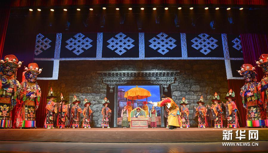 10月25日,演員在表演大型舞臺(tái)劇《朗薩雯波》。當(dāng)日,大型舞臺(tái)劇《朗薩雯波》在西藏自治區(qū)藏劇團(tuán)與觀眾見(jiàn)面。這是傳統(tǒng)八大藏戲之一的《朗薩雯波》在完成舞臺(tái)化、數(shù)字化之后首次亮相。除拉薩外,還將在日喀則、山南等地進(jìn)行展演。2013年起,為了突破傳統(tǒng)八大藏戲在發(fā)展中遇到的瓶頸,西藏自治區(qū)藏劇團(tuán)啟動(dòng)了八大傳統(tǒng)藏戲舞臺(tái)化項(xiàng)目。幾年來(lái)從舞蹈、服裝、道具等方面進(jìn)行重新打造,先后完成了《白瑪文巴》、《諾桑法王》、《卓娃桑姆》三部劇的舞臺(tái)化工作。新華社記者 晉美多吉 攝