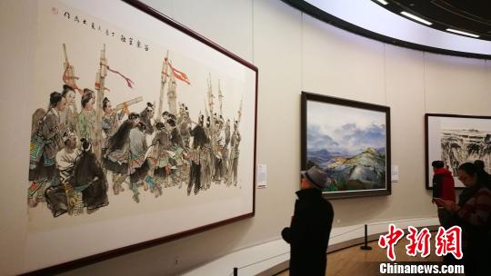 中新網(wǎng)北京12月31日電 (記者 應妮)“翰墨書盛世 丹青頌華章”多彩貴州大型書畫作品展正在中國美術館展出,該展集中展出聚焦貴州歷史畫面的117件美術和書法作品。