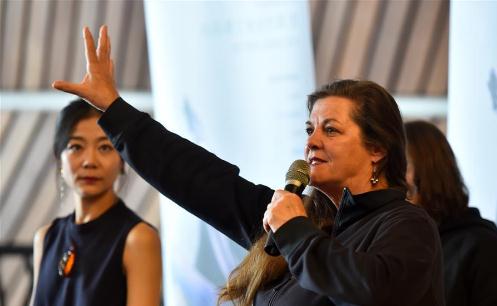 10月29日,在北京國家大劇院舉行的舞蹈課堂活動(dòng)上,美國瑪莎·葛蘭姆現(xiàn)代舞團(tuán)的巡演經(jīng)理費(fèi)伊·羅森巴姆介紹瑪莎·葛蘭姆舞蹈技法。 10月30日至31日,美國瑪莎·葛蘭姆現(xiàn)代舞團(tuán)將攜舞蹈合輯《寂靜悲喜》亮相國家大劇院,為觀眾展現(xiàn)現(xiàn)代舞藝術(shù)的迷人魅力。