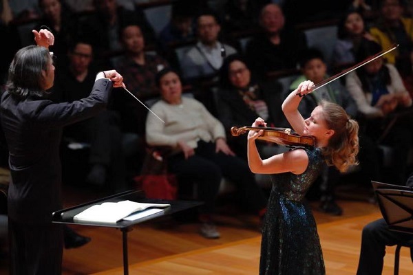 央廣網(wǎng)北京3月15日消息 3月14日晚,指揮家弗拉基米爾·尤洛夫斯基與小提琴演奏家朱莉婭·費舍爾,攜手英倫交響名團倫敦愛樂樂團,在國家大劇院音樂廳舞臺,激情碰撞音樂花火,為觀眾帶來一場回味不盡的“夢幻交響”。