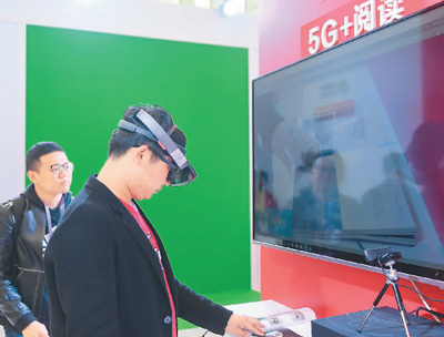 觀眾在數(shù)字閱讀發(fā)展與技術(shù)博覽會(huì)上體驗(yàn)5G+閱讀。 新華社記者 黃宗治攝