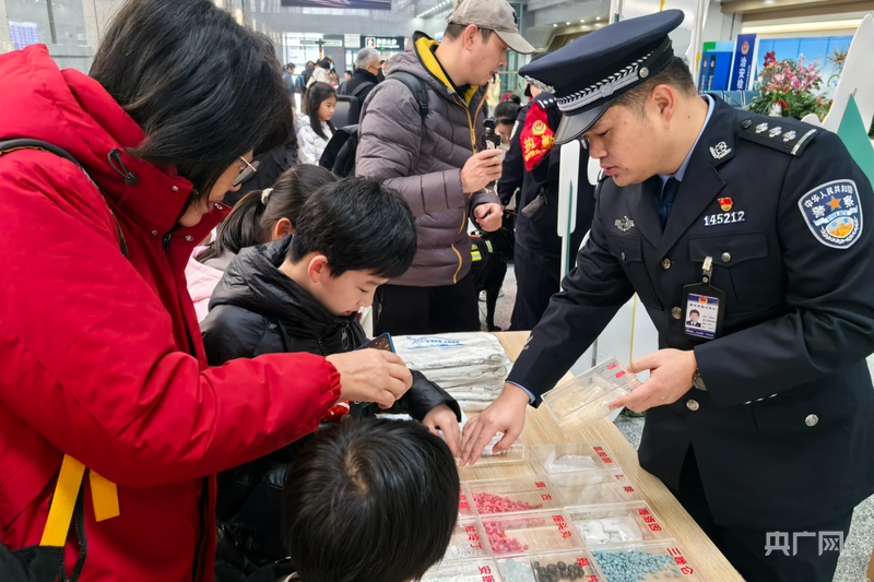 民警為旅客講解安全知識(央廣網(wǎng)發(fā) 劉曉彬 攝)