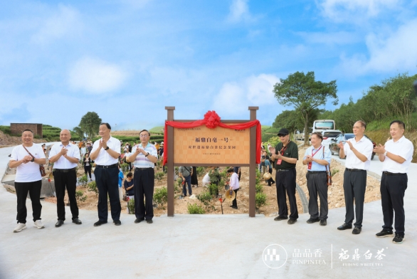 中國茶葉流通協(xié)會會長王慶、中國出口信用保險公司福建分公司原巡視員,海峽兩岸茶業(yè)交流協(xié)會副會長 連逸群、福鼎市人大常委會主任、福鼎市茶產(chǎn)業(yè)發(fā)展領(lǐng)導小組常務(wù)副組長 蔡梅生、福建品品香茶業(yè)有限公司董事長林振傳共同為這座紀念茶園揭碑,這一雙遺白茶“生態(tài)傳承+技藝展示+文旅體驗”的活態(tài)平臺,未來將不僅是有機茶種植基地,更會成為游客感受農(nóng)遺生態(tài)、體驗非遺制茶的場所,見證雙遺價值從“紙面”落入“實踐”。