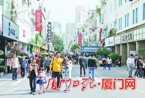 昨日,廈門(mén)陽(yáng)光燦爛,氣候溫和,地震發(fā)生時(shí),中山路上行人如常。(記者姚凡攝)