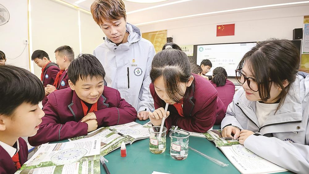 1月20日,福建師范大學(xué)東僑實(shí)驗(yàn)小學(xué)內(nèi),大學(xué)生與小學(xué)生共同體驗(yàn)由寧德時(shí)代開發(fā)的“零碳”特色校本課程。