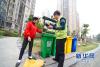 3月29日,廈門市天湖城小區(qū)保潔員楊永生在收集廚余分類垃圾。 新華社記者姜克紅攝 -